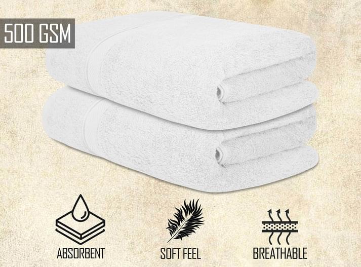 Alifant Royal Egyptian White Bath Towels, 500 GSM 100% Cotton Yarn Ring Spun, Luxury Plush And Premium Towels, Hotel Quality, Highly Absorbent, Quick Dry And Skin Friendly, Set of Two, 70×140 cm